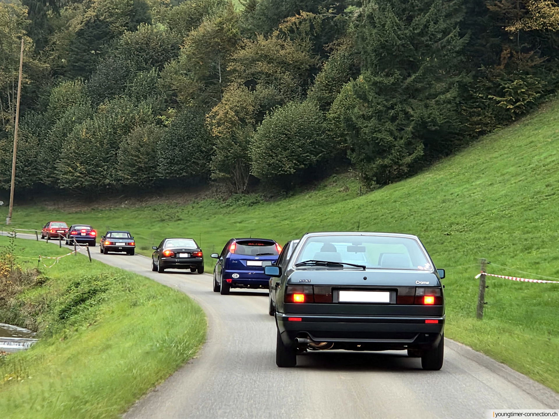 Mit zehn Youngtimern am Start in Wolhusen führte die Route zunächst über eine Überlandstrasse, und im Anschluss für den Grossteil der Ausfahrt nur noch über schmale Nebenstrassen. Die verwinkelten Strassen sowie das herbstliche Wetter mit teilweise dichtem Nebel verhalfen dazu, dem einen oder anderen ortsunkundigen Teilnehmer den Orientierungssinn zu trüben. Die Frage „Wo bin ich hier eigentlich?“ dürfte sich dabei so mancher gestellt haben.