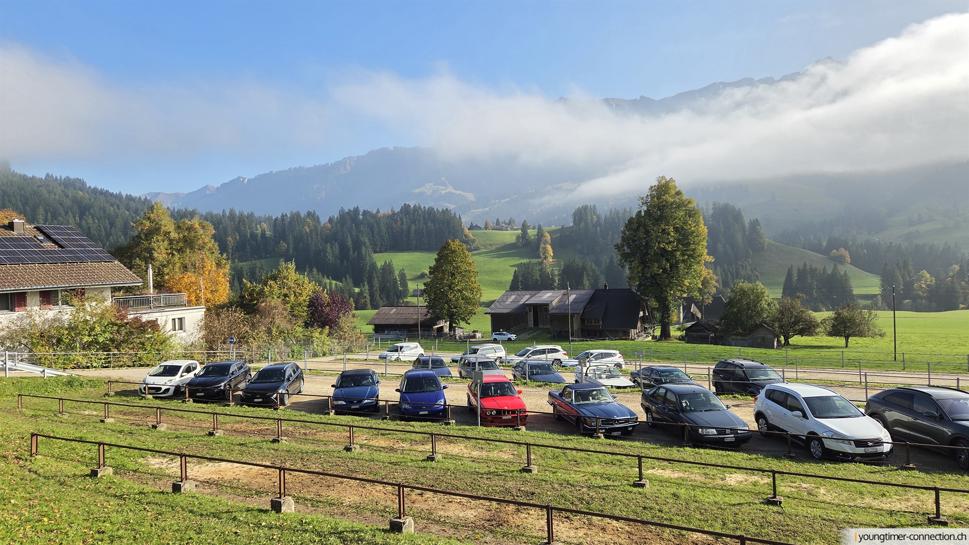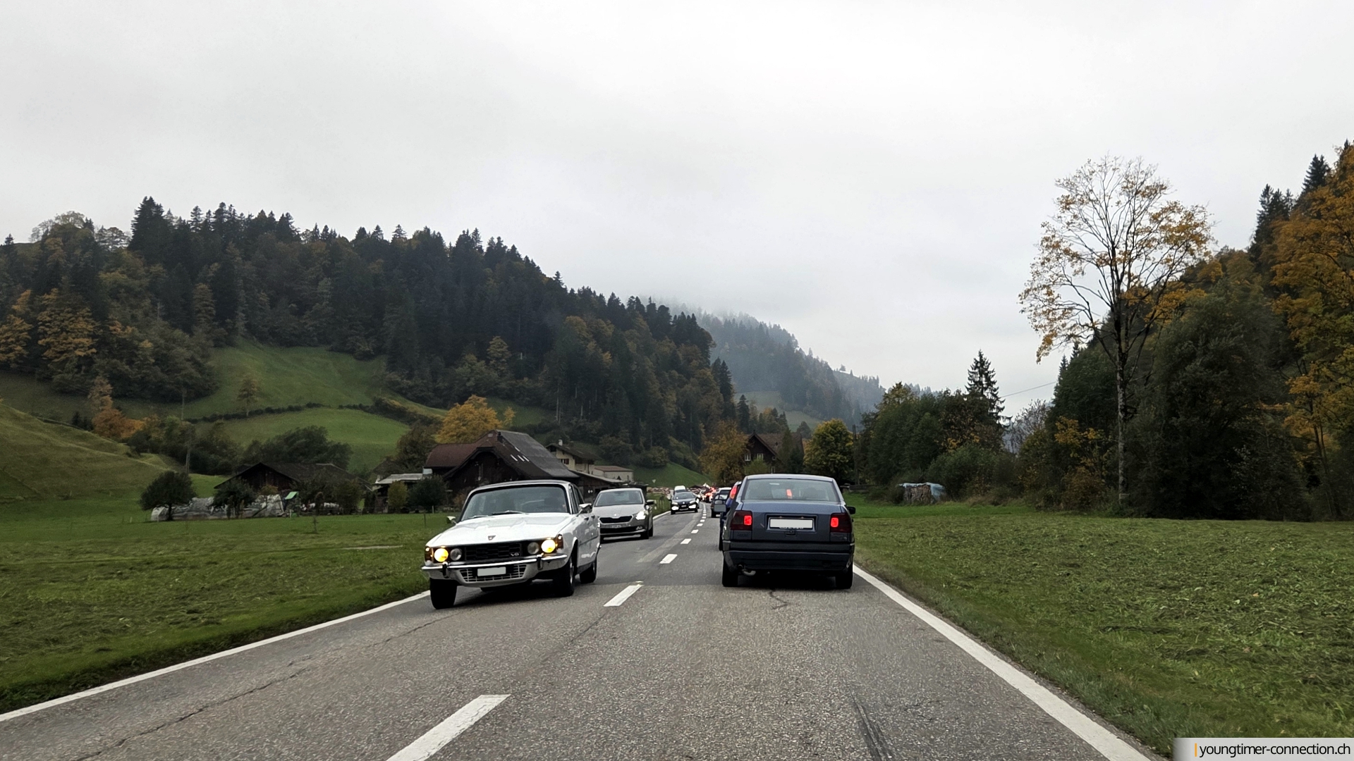 Gestärkt (oder bereits satt), ging’s weiter durchs Emmental. Trotz des Nebels konnte sich hier und da etwas Sonne bemerkbar machen. Auf den kurvigen Nebenstrassen gabs neben dem Panorama auch oftmals gleich den Youngtimerkonvoi zu sehen, sofern man sich vorne oder hinten im Konvoi befand.